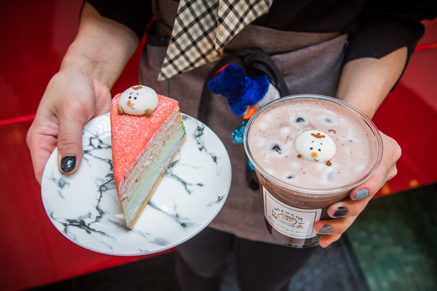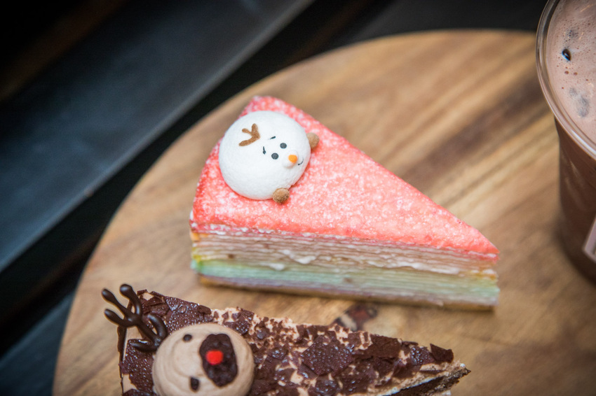 雪人彩虹千層,之前好咖的彩虹千層就被譽為中壢最好吃的千層蛋糕,這次上面加了超可愛的小雪人,色彩繽紛千層這回更可愛了!