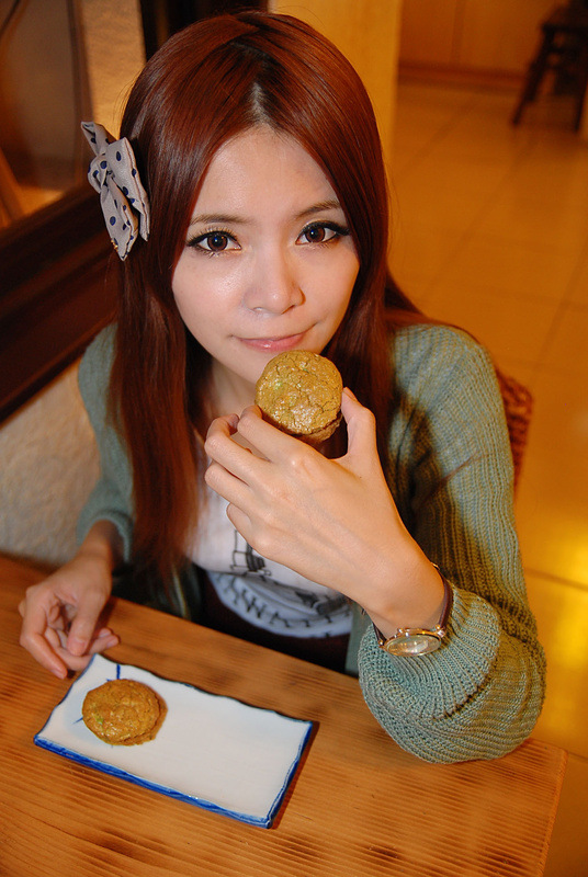 外皮脆,咬起來可以看見滿滿的抹茶,還有白色的奶油,