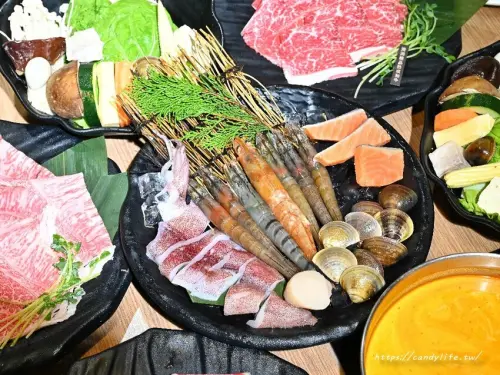 搭配的海鮮和肉品也都很厲害,先來說說海鮮,海鮮拼盤的料很不賴,裡面有大大顆肥美的蛤蠣、海草蝦、白蝦和透抽還有新鮮的鯛魚片!還放上花擺盤,整個有夠美。
