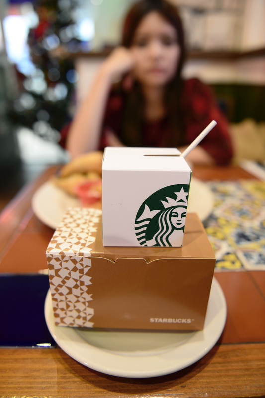 ㄉㄨㄞ妹特地去星巴克買兩支可愛蛋糕,一支黑巧克,一白巧克力,