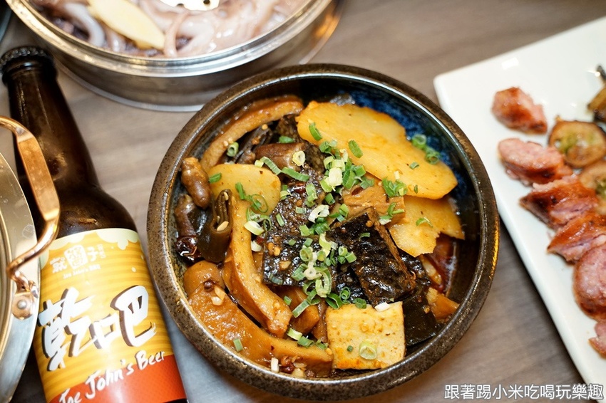 滷牛肚(38元)、滷牛肋(38元)、小羔羊肉串(28元)搭配麻辣湯頭去煮,也是挺下酒的