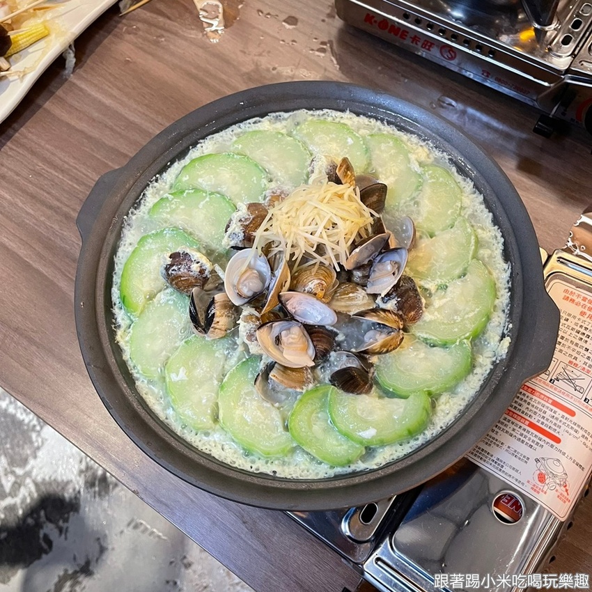 這是很有創意的蛋香絲瓜蛤蜊鍋(208元),絲瓜蛤蜊搭配蛋香是挺不錯的,煮完還像喝蛋花湯的海鮮版,有海味又有蛋香的湯頭,搭配絲瓜的甜味,也是解酒的好物