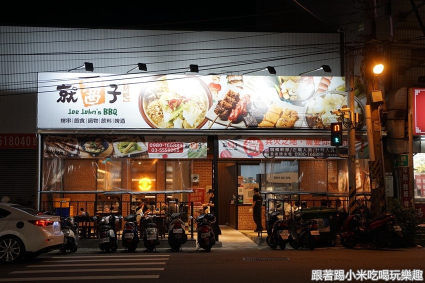就醬子烤吧-竹北店位於竹北中正東路及三民路交叉口,醒目招牌非常吸引人,靠近台元科技園區,下班後跟好友同事們來喝一杯吃好料,可以忘記一天的辛苦。