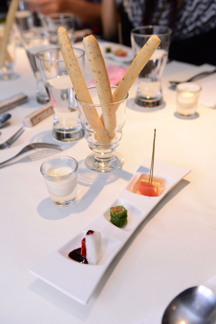 前菜部分超可愛的擺盤,分別以蒟蒻番茄、彩椒水蓮與藍莓山藥,