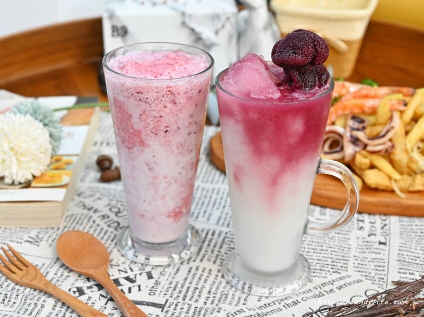 喜歡莓果系列的朋友,糖糖很推薦這兩杯,莓果傳情冰沙採用莓果加上優格下去打成冰沙,喝起來酸酸甜甜的,還可以吃到微微的莓果顆粒,另一杯巨峰乳酪冰沙也好好喝,裡頭還有隻可愛的狗狗葡萄冰磚,整杯喝起來超葡萄,伴隨著乳酸的酸甜氣息,清爽又解膩