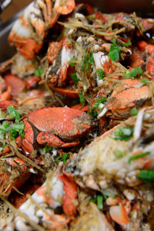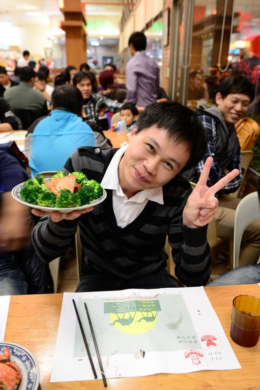 吃飽後,休息看著同學去拿一大盤蟹類,還說要幫我擺盤讓我拍,