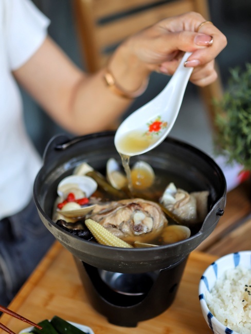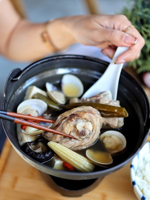 裡面還有整朵香菇、玉米筍、蛤蠣熬煮更加清甜!