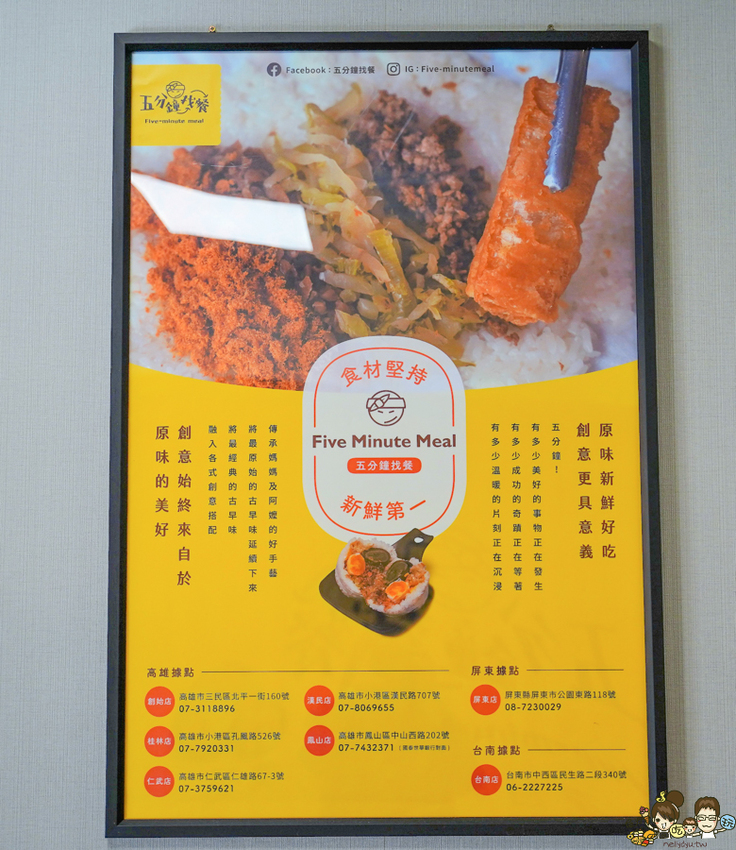 高雄已經有超過7間門市可以吃到五分鐘找餐,鄰近居家五分鐘路程就能吃到美味早餐、早午餐的概念