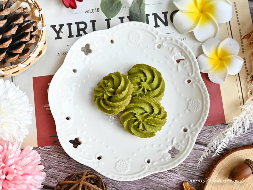 綠油油的抹茶曲奇餅是採用日本進口的小山園抹茶粉製作,抹茶香氣濃厚,吃起來不會有抹茶的苦韻,不僅是抹茶控的最愛,小朋友也很尬意