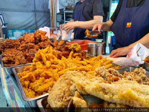 甘梅地瓜薯條也非常受歡迎,堆的小山一樣高的炸雞真的好壯觀