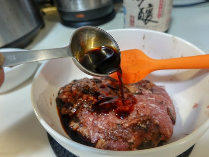 步驟二》倒入1.5匙醬油並倒入2號砂糖0.5匙
