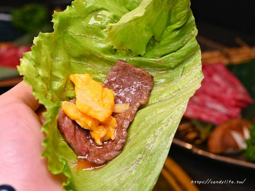 口感紮實多汁,單吃牛肉香氣十足,搭配生菜及黃金泡菜享用,層次更加豐富爽口