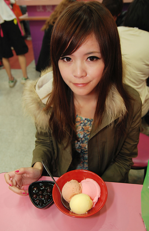 很快就輪到我們,我與ㄉㄨㄞ妹個別點了包心煉乳與包心優格冰沙,