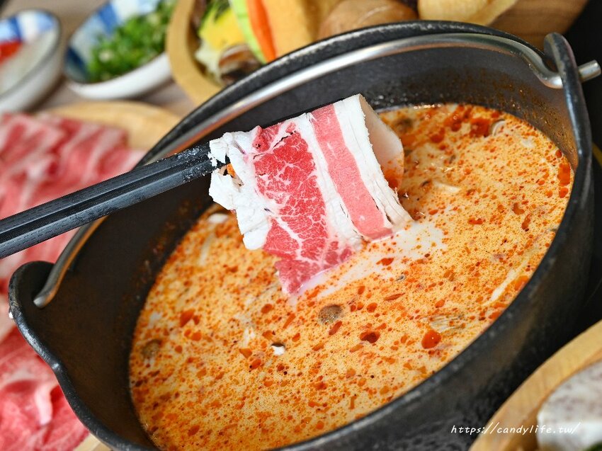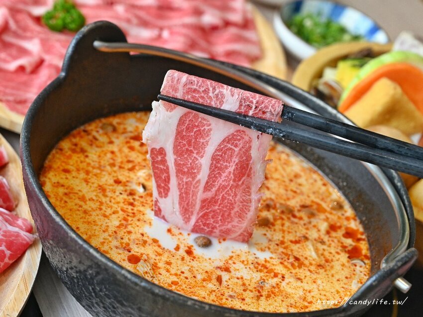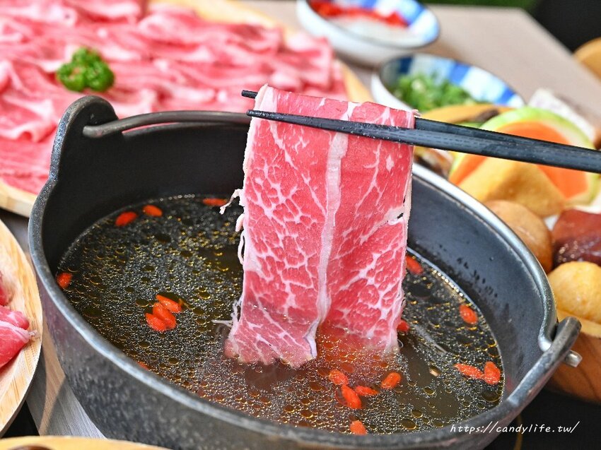 糖糖點的是加量的無骨牛小排,選用Choice等級的美國無骨牛小排,有著大理石紋路的油花,看起來相當可口,只需要涮至約5-7秒,肉質呈現粉嫩色澤就可以享用了