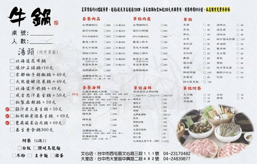 牛鍋私藏鍋物菜單