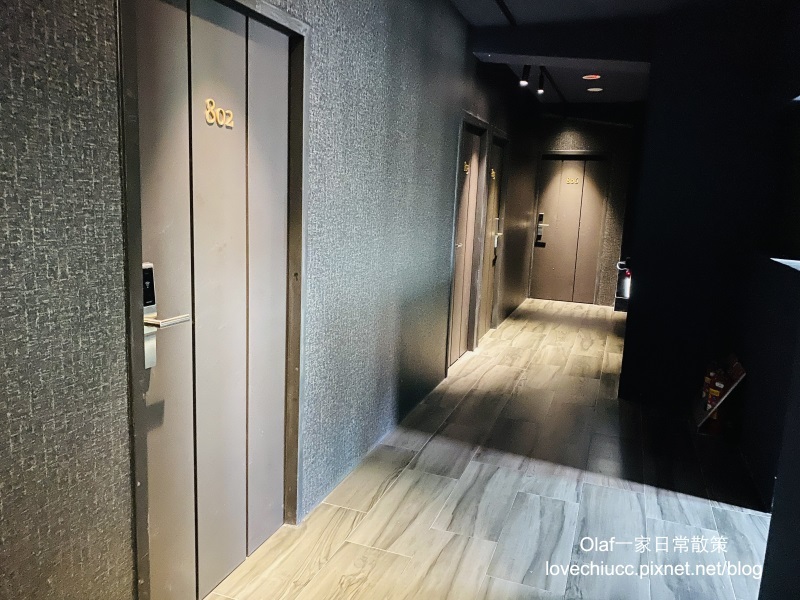 搭電梯上樓,也是沈穩色調走廊,一層樓大約五間房間