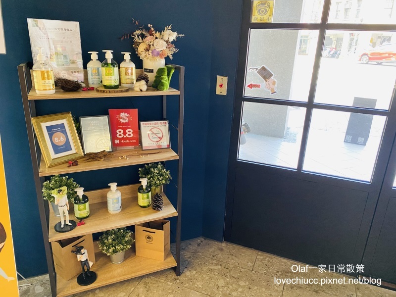 櫃檯旁有展示飯店提供的沐浴用品品牌,若有需要可洽櫃檯購買