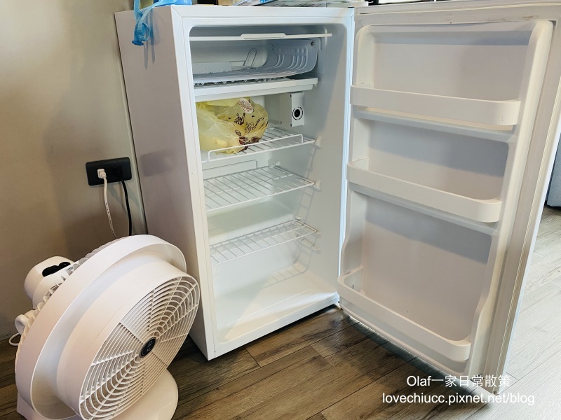 房間有小冰箱及小電扇