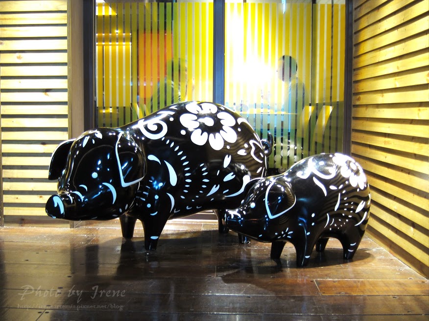 大門的右側有超醒目的大小花花豬!實在是好可愛哦!即使門口停滿了機車,也一定要擠進去拍一下他們,才不枉此行呢!