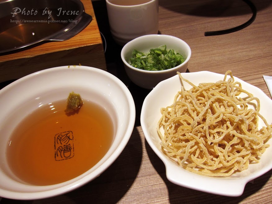 火鍋的副餐裡最值得一提的就是這裡獨有的柴魚高湯搭配上柚子胡椒醬,使用的方式是把醬攪進高湯後,