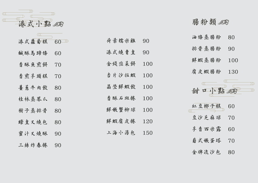 來看一下菜單吧,他們是手工港式精緻點心,以這種水準來說價格很合理又不貴,其他還有炒飯麵及粥品,來這邊飽餐一頓又能享用美食是絕對沒問題!
