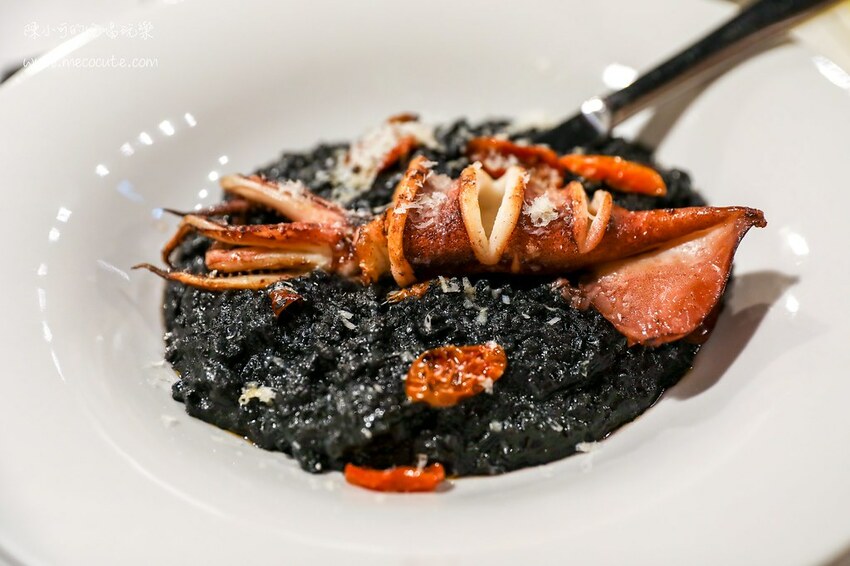 吃下第一口燉飯,牙齒和嘴巴都會黑黑的,第一次約會或是在乎外表的人小心慎點!但是這非常好吃,每次吃義式餐廳都會忍不住點。