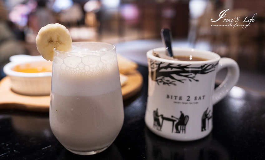 用新鮮香蕉跟牛奶一起打的香蕉牛奶,味道自然且甜度不會過高,