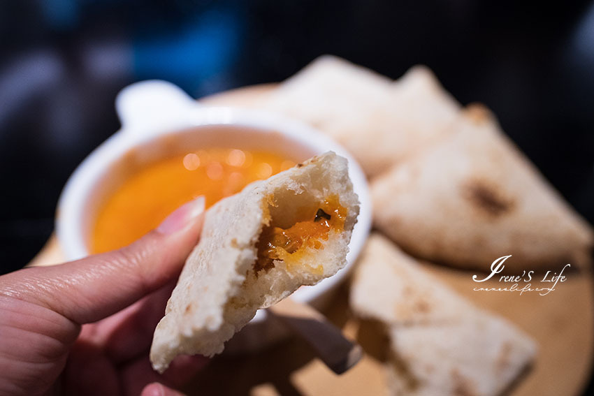 麵包烤的鼓鼓澎澎的,帶有嚼勁,充滿麵香跟烤香,單吃就很好吃,