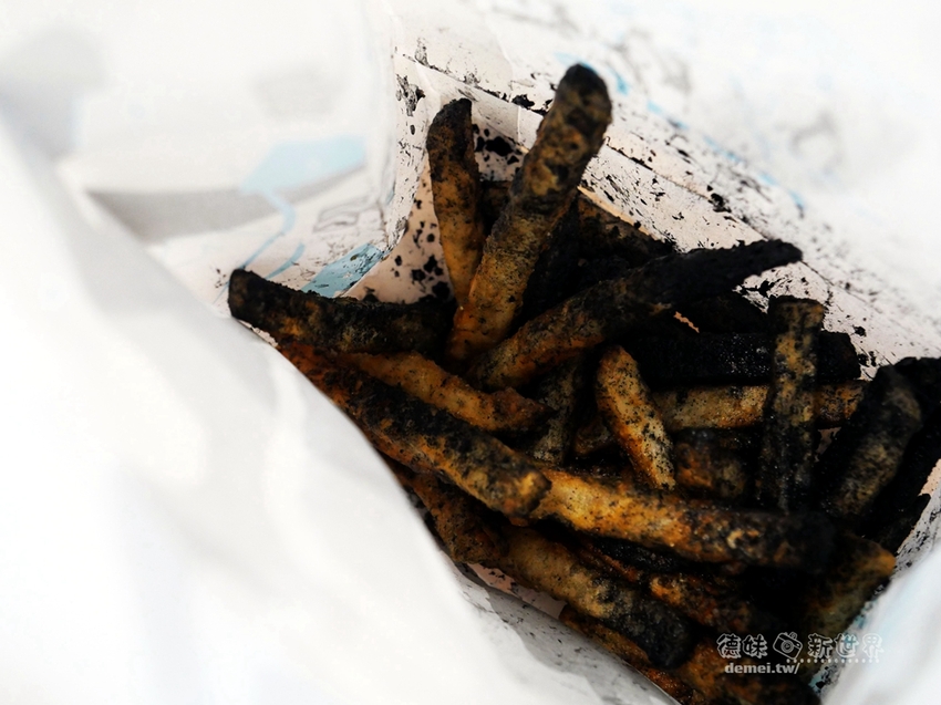 以麥哲倫企鵝為創意發想的薯條,所以袋內搖搖粉也是一片黑,