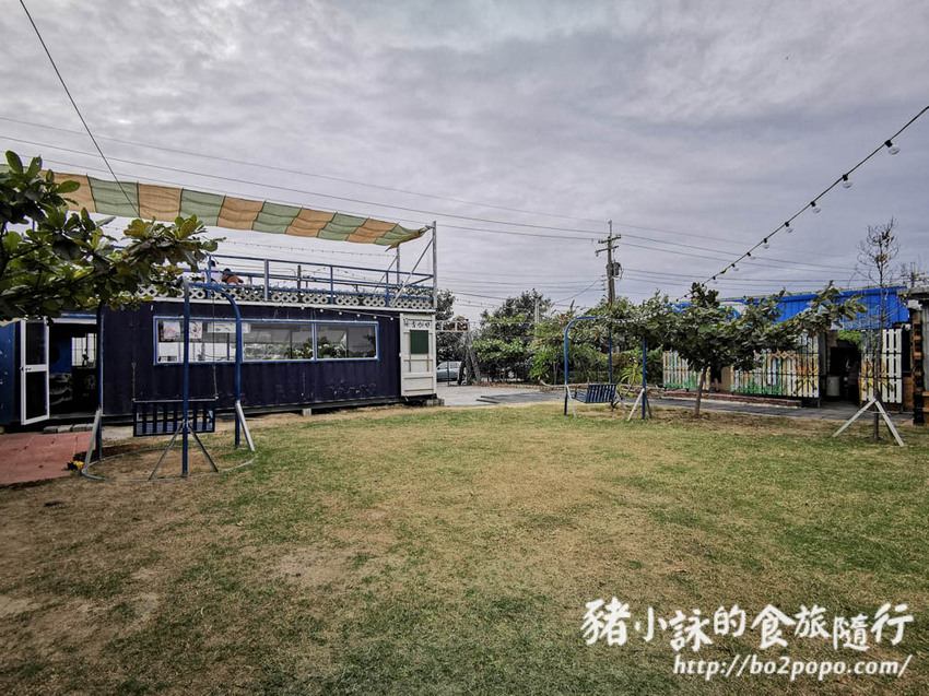 貨櫃屋圍起來的中間是廣場,有設置盪鞦韆,