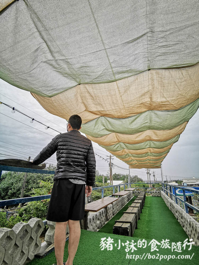 貨櫃屋上的觀景台,有遮陽布幕,即使飄點小雨,也不會淋濕。