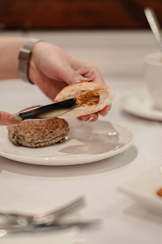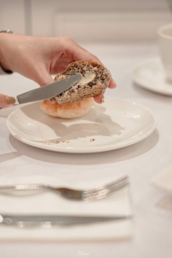 這兩款麵包也是記憶點頗深刻,全麥麵包與圓麵包皆是手工麵包,抹上香而順口且相當獨特的椒麻抹醬、亦或搭配桂花風味,香甜不膩且爽口,在西式的餐包裡融入了中式風味的抹醬,很佩服主廚的創意。