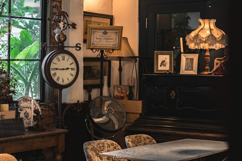 店裡擺放在四處的歐式古董傢俬品,是最讓我目不轉睛的,有的可能掛在牆上、有的可能落地、有的在櫃上,但總會覺得這些物件就像原本就存放在這裏似的適切,主理人喜愛老古董的精神,放進空間裡,使其繼續散發著魅力。