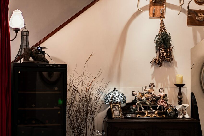 香頌私宅延伸出去的又是一處新空間,在這更能擁有自己的空間,不容易被打擾,反而是許多小聚會選擇的呀!當然我自己也很喜歡這邊,因為擺放了更多的老古董!特別的是有面牆還是以紅磚堆砌而成,在歐式氛圍中添了些中式感,卻不失優雅。