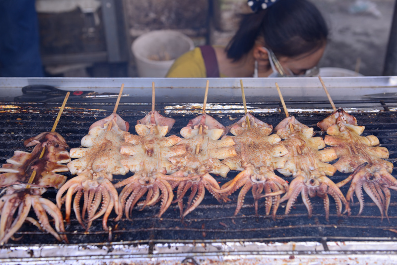 烤魷魚攤販席捲旗津街上,望眼看去少說有10間以上在賣烤魷魚,