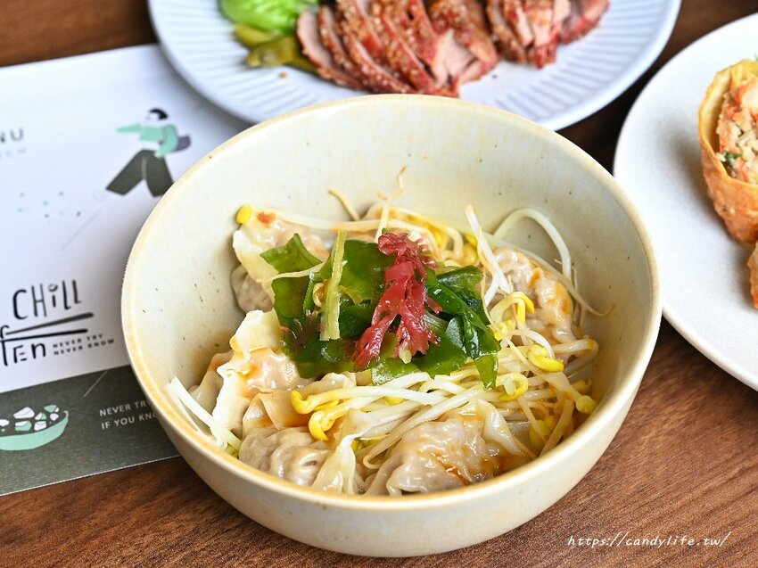 Chill men的抄手內餡相當紮實,第一次吃到包入櫻桃鴨的抄手,口感與香氣有別於常吃到的豬肉餡,裡頭還添加了柑橘,多了淡淡的柑橘香,如果喜歡吃辣的朋友,辣醬可以再加多一些唷