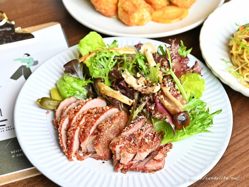 採用煙燻櫻桃鴨及柑橘製作而成的內餡,搭配Q彈外皮,外層淋上店家自製的金桔醬及辣醬,搭配海帶、豆芽菜等食材