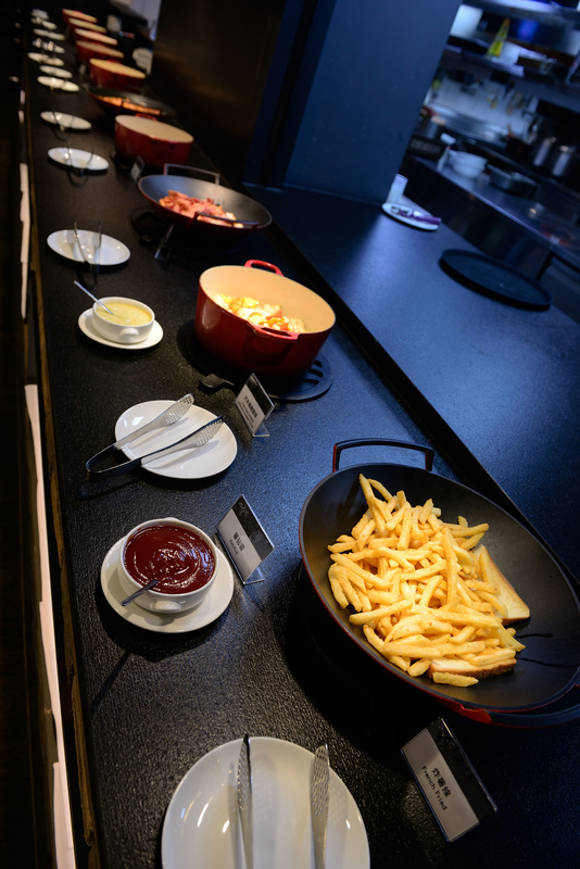 西式早餐提供燉飯、熱狗、培根、薯條、牛肉切片、雞塊、燉肉...等,