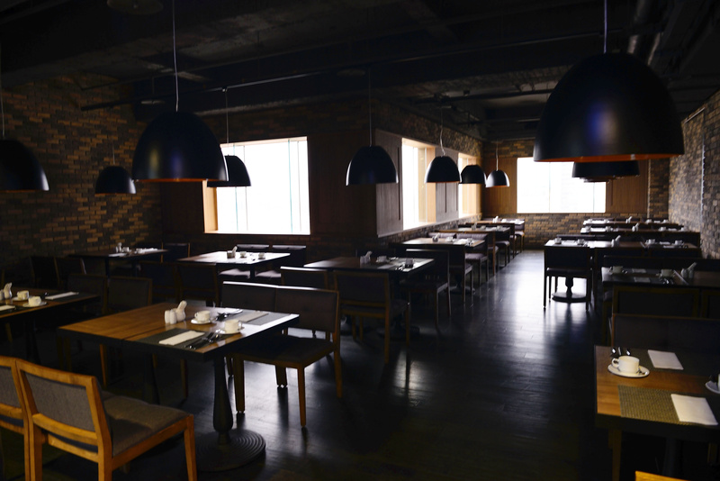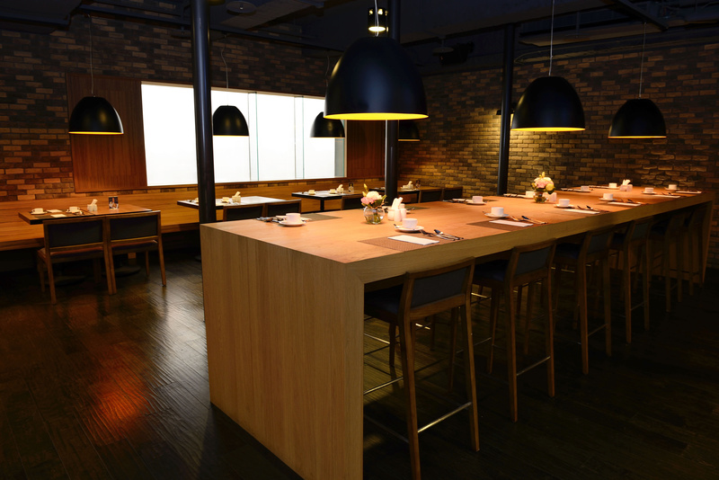 簡約的北歐風格,無限延伸的木質座位,與慵懶氣氛的反折燈,