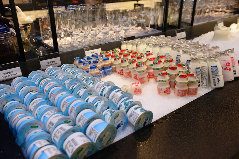 飲品區,不僅有咖啡與牛奶,還有知名廠牌的乳酸飲料與優格,