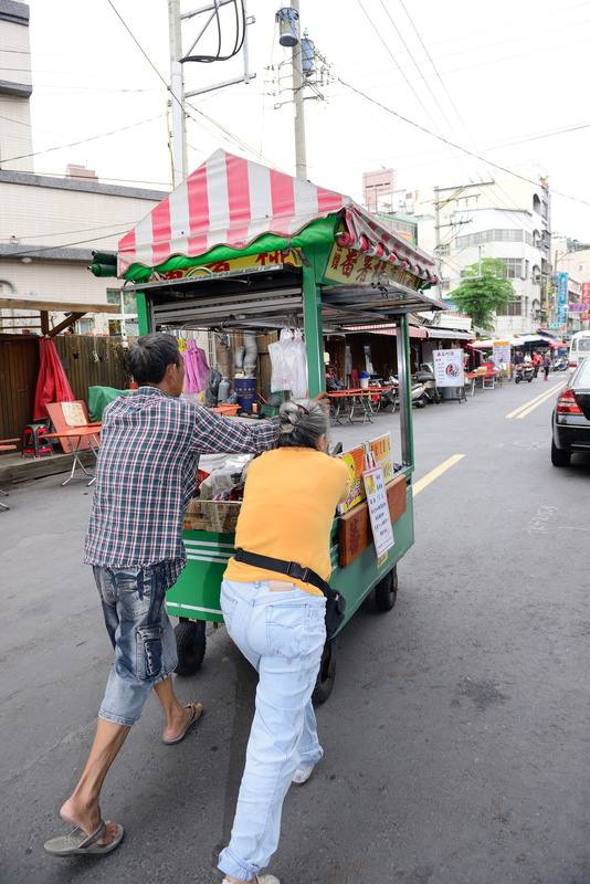 攤商開始推攤車到天后宮後方的位置,準備前置作業.