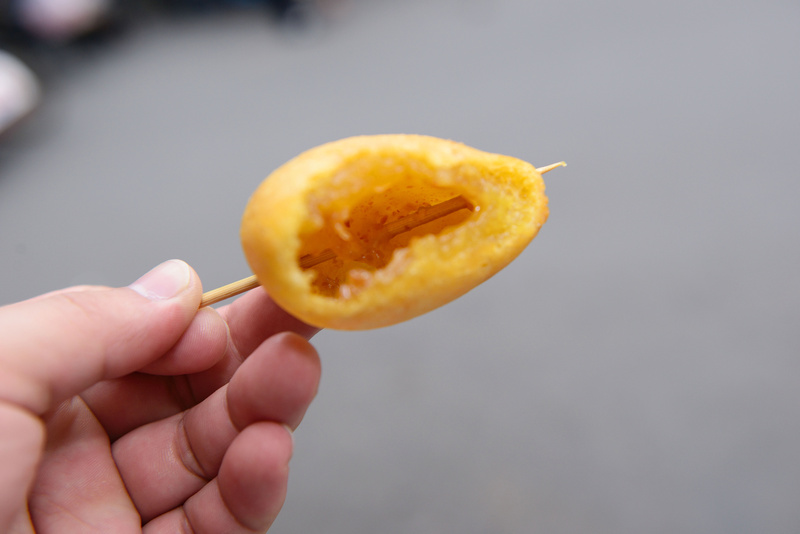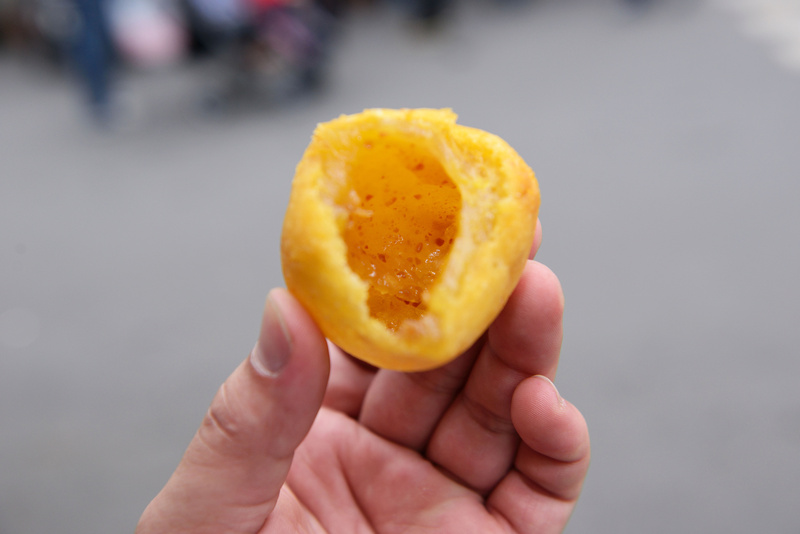 蕃薯椪其實吃起來頗像地瓜球,外層有點厚也蠻酥的,內餡還有蕃薯糕,