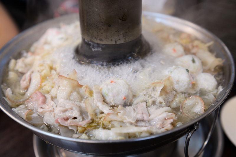 酸菜白肉鍋部份,火鍋中間是放入炭火,讓火鍋可以不斷的維持溫度,