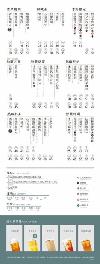 飲品的種類以茶類為店內主推產品,冬季飲品的話則以新產品『沐嵐咖啡凍奶茶』做為主打產品,但是栗子私心認為還有一款飲料也很適合冬天享用,那就是『黑糖薑母奶茶』我那天試喝了一下,薑的辣度不會太高好入口,又有薑暖身的效果,帶有淡淡的黑糖香氣結合奶茶,這杯也是棒的選擇唷!