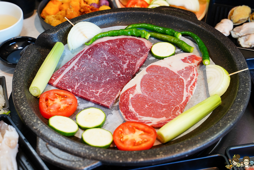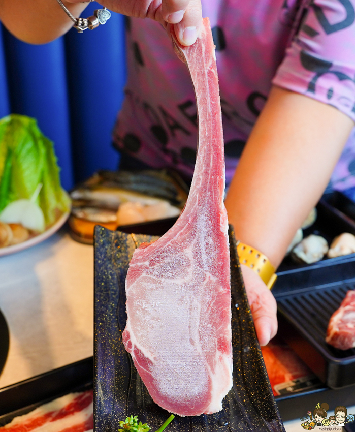就可以吃到超大戰斧豬排、和牛牛排、厚切A級牛排、手切極品牛肋條、手切上等橫膈膜牛肉(美國牛)等等頂級食材