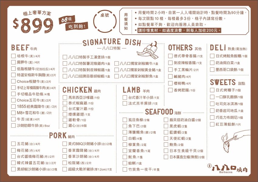獨門特製異國風味沾醬、新鮮食材、499元起跳之八八口頂級燒肉,手切橫膈膜、和牛牛排、巨大戰斧豬排、鮮味小卷等燒肉美食 X 高雄吃到飽
