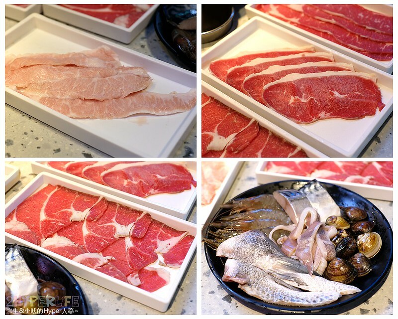 最後我們選擇海陸完全制霸的548價位,除了可以自助吧內原有的16種肉品之外,另有海鮮還有以下這幾款比較特別的肉品可以任點喔:美國霜降牛、頂級雪花安格斯黑牛、choice翼板牛、台灣手切松坂豬