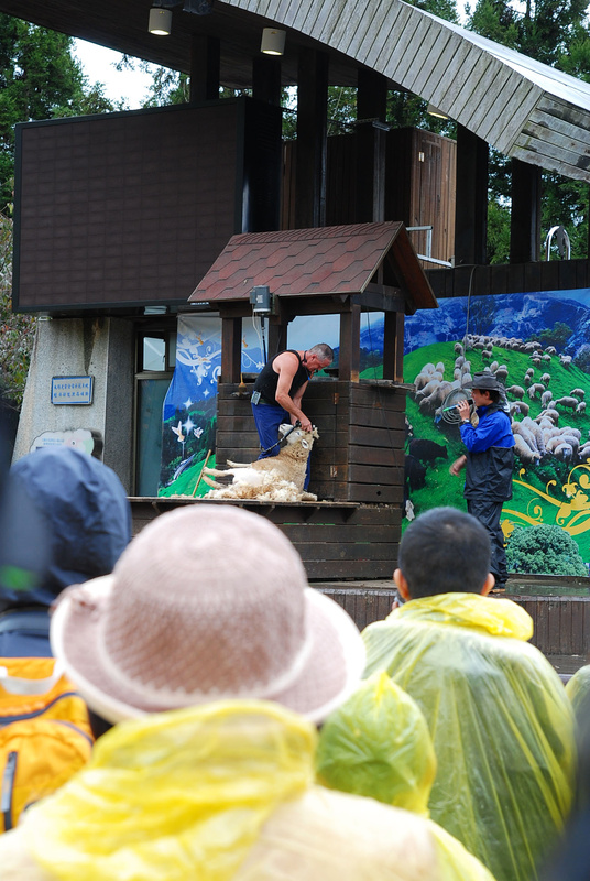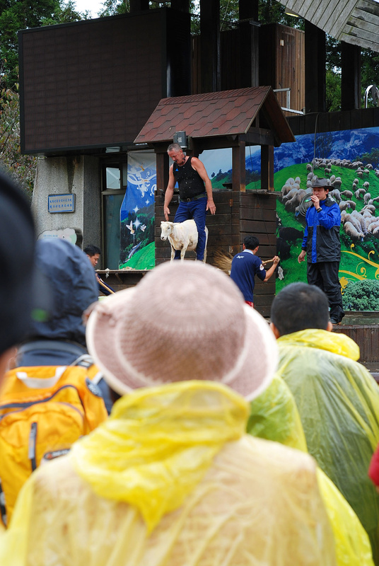 準備開始展開剃羊毛秀,流利的手法,把綿羊抓的很舒服,