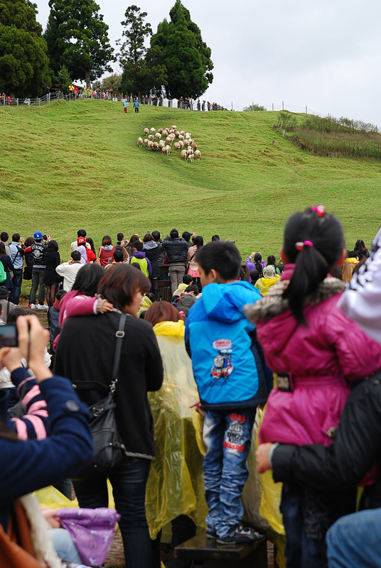 一轉眼,綿羊出現在觀眾身旁,羊群裡有些剃過毛,