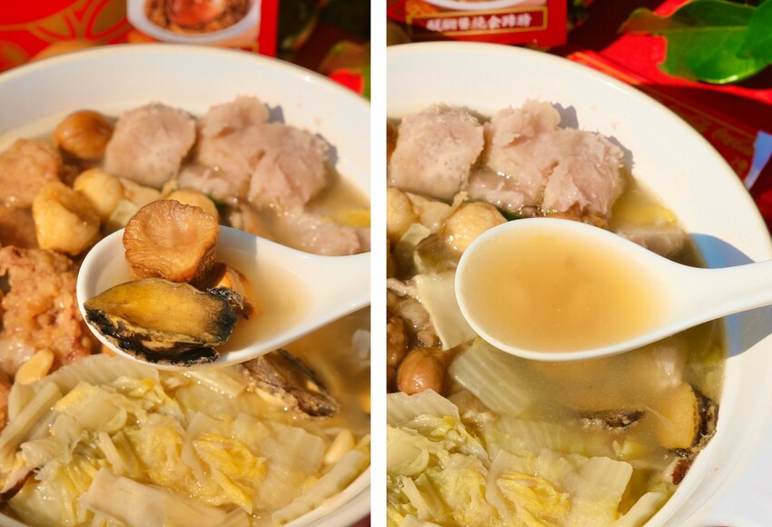 ▼整份超澎派倒出來幾乎都是料,包含整顆鮑魚、栗子、排骨等數十種食材~